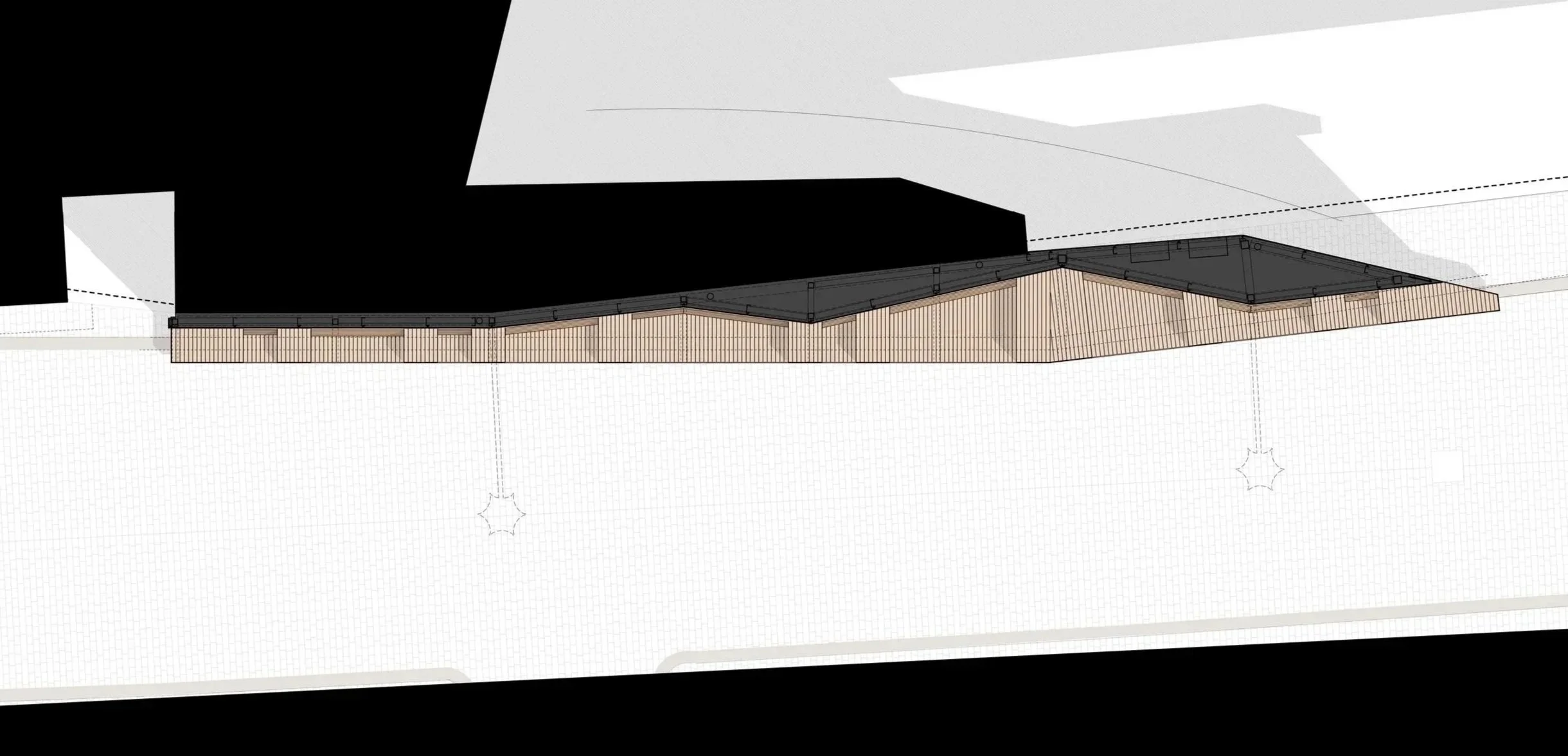 As part of our design solution we developed a 22 meter long mural and seating ‘peninsula’ for the southern edge of Bulletin Place. The peninsula has a superimposed roof overhang framing a generous gathering platform providing a new sense of place for the lane.